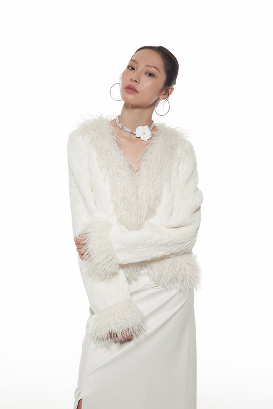 Cow-Print Kunstpelzjacke mit Strickärmeln