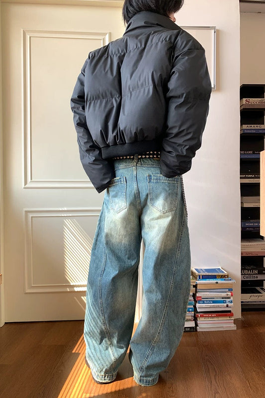 Kurz geschnittene Denim-Jacke mit Zipper & ausgefransten Kanten